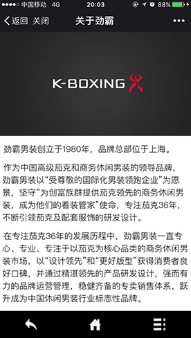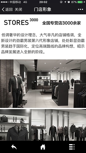 在专注茄克36年的发展历程中,劲霸男装一直专心、专业、专注于以茄克为核心品类的商务休闲男装市场,以“设计领先”和“更好版型”获得消费者良好口碑,并通过精湛领先的产品研发设计,强而有力的品牌运营管理,稳健齐备的专卖销售体系,跃升成为中国休闲男装行业标志性品牌。